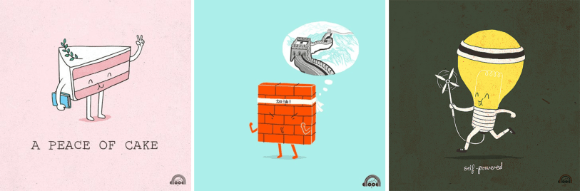 ** الرسومات أعلاه من اليمين لليسار للفنانة ليم هينغ سويي LIM HENG SWEE من ماليزيا وهي فنانة للرسومات التي تجسد أفكارا مبسطة بأسلوب الرسم العبثي أو الخربشات القلمية