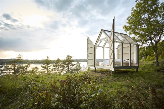 ** الصورة أعلاه لمشروع في السويد يسمى كابينات ال72 ساعة، وهو مشروع فني بحثي لأثر الطبيعة على ذوي الوظائف الصعبة ، في إطار سياحي يوفر غرفا من زجاج في الطبيعة متناثرة حول بحيرات في منطقة هينريكزهولم وقد تم تصميمها من قبل المعمارية جينا برغر